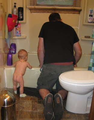 Robert and I alone in the bathroom for a while, and Robert sleeping in a chair